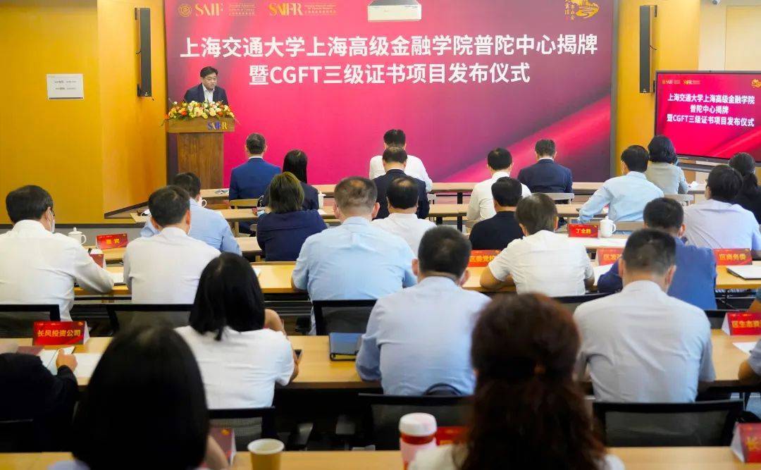 2022年9月26日,上海交通大学上海高级金融学院(高金/SAIF)普陀核心揭牌暨CGFT三级证书项目宣告典礼实行。