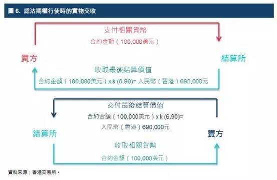 如认购期权被行使,实物交收时,买偏向结算所缴付最终结算价钱,即合约金额(100,000美元)xk(6.90)=百姓币(香港)690,000元,并自结算所收取相称于合约金额(100,000美元)的合联货泉币值。