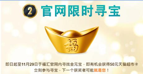 不日起登录福汇官网,列入官网寻宝运动。只消您正在运动时刻寻找到藏正在福汇官网苟且页面中的“金元宝”,即可有时机得回价钱50元的天猫超市卡!奖品逐日送出,每人逐日均可列入一次,还不速来寻宝,尝尝你的运气!更众详情请查看福汇官网干系页面