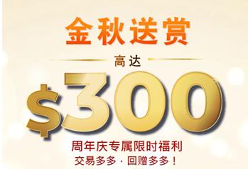 错过年头黄金大礼的客户,别再错过新一波的限时优惠啦!为感激20年此后大中华区域客户对福汇的支柱与信赖,不日起至岁暮,福汇客户有时机得回高达$300回赠奖赏。行情逐日震动,但优惠仅正在当前,别再错过啦!更众详情请查看福汇官网干系页面。