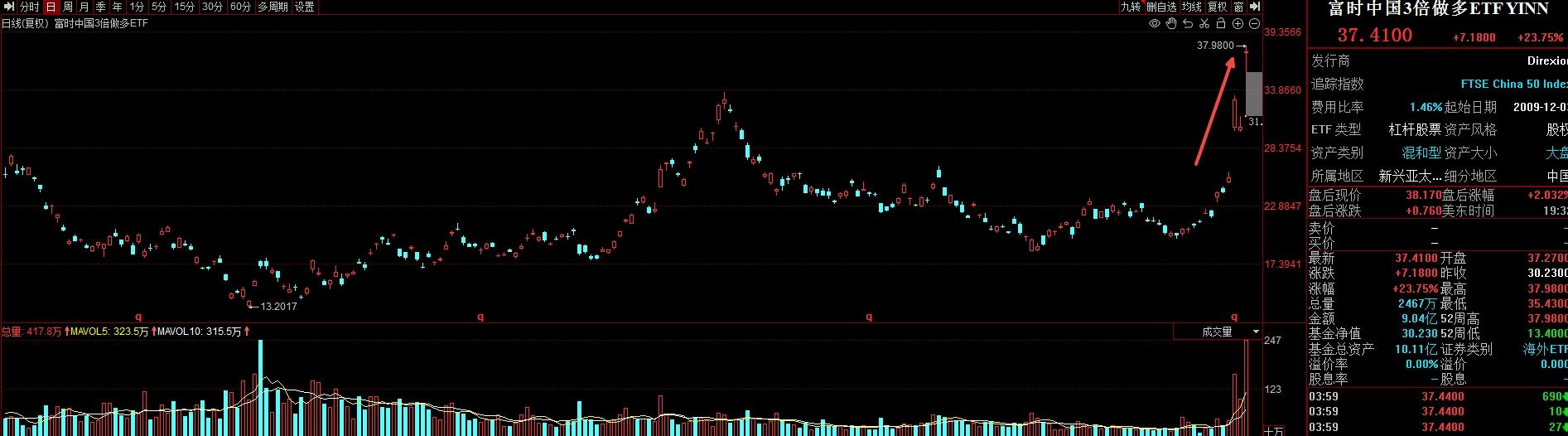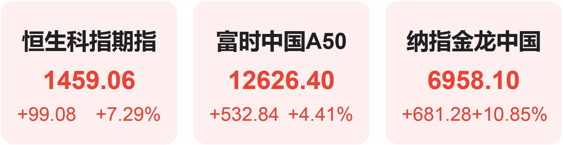 隔夜恒生科技指数期货上涨7.29%,纳斯达克中邦金龙指数上涨10.85%,富时中邦A50指数上涨4.41%。富时中邦3倍做众ETF飙涨近24%。
