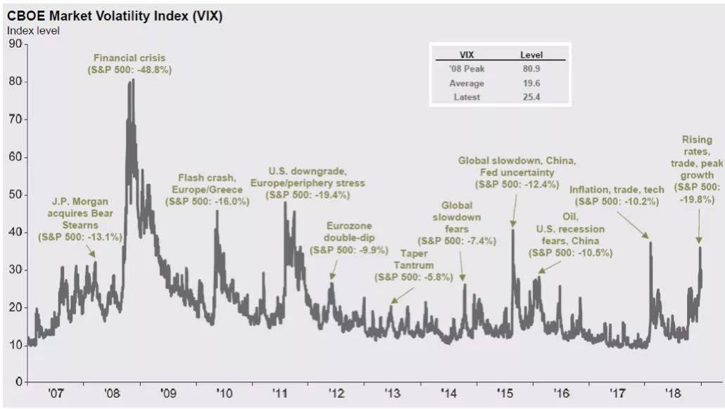 咱们看振动率指数VIX,正在2018年12月美股暴跌的岁月,涌现了大幅飙升。尽管2009年着手的这一轮美股大牛市,中央也涌现了众次事宜导致VIX的飙升。