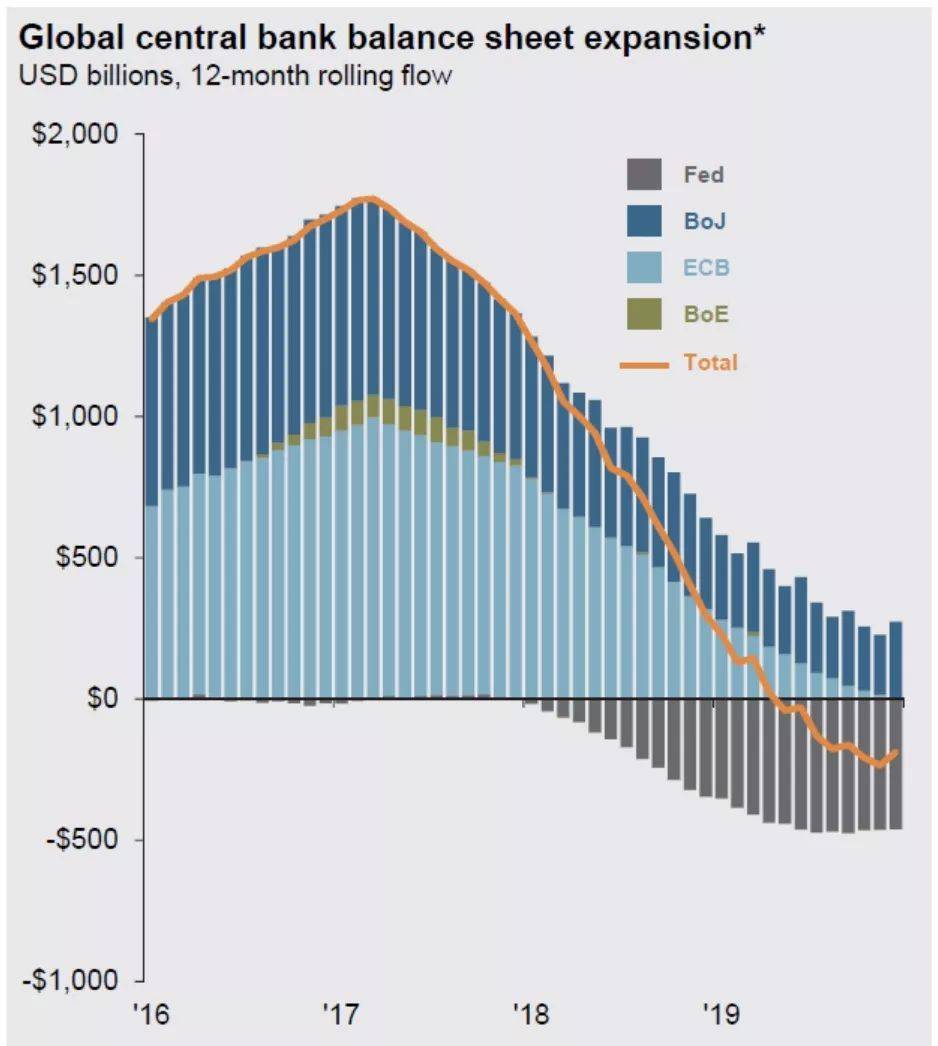 环球央行资产欠债外的转折。他们曾经从资产欠债外的扩张转向了资产欠债外的紧缩。