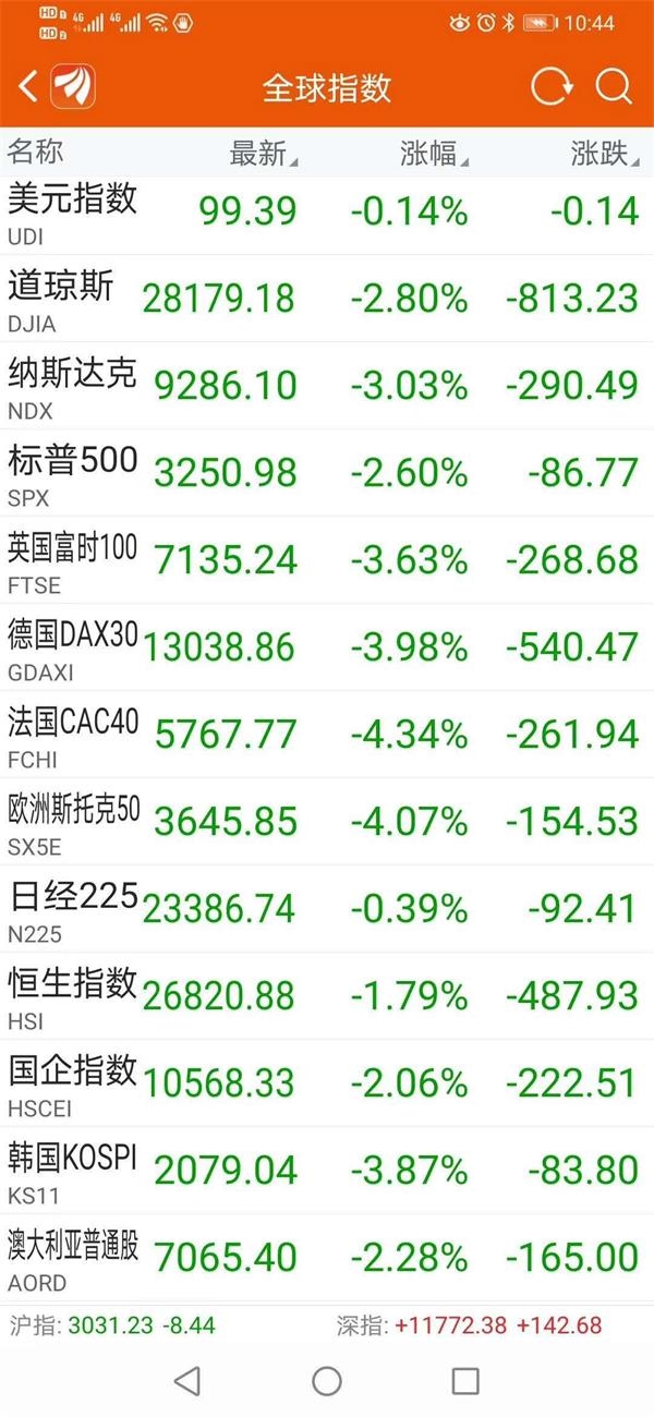 英邦股市、法邦股市也阐扬惨然,盘中跌幅均突出3%。意大利富时MIB指数盘中下跌突出3%。