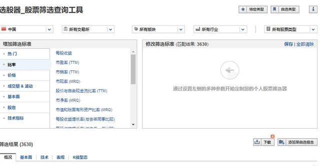 这个网站的选股东西尽头壮大。通行的抉择是依照市盈率、市值、一年震撼、股息率、均匀贸易量来筛选股票。别的,另有代价、分红、比率和基础面、本领目标等筛选功用。