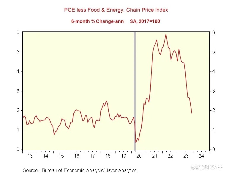 凭据美邦经济阐述局(BEA)的数据,2023年11月份主旨PCE物价指数环比仅上升0.1%。按六个月年率谋略,这一目标保留正在1.9%的安靖秤谌。