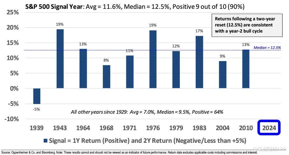 Wald还吐露:“正在接下来的一年里,标普500指数的中位数涨幅为12.5%,股市走高的概率为90%。这些回报预期与为期两年的牛市周期划一。”