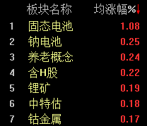 板块方面,隔夜美股固态电池股Quantumscape大涨,固态电池观念纷纷大涨。银行股则加快上涨,瑞丰银行触及涨停,中信银行放量大涨6%,姑苏银行、成都银行、宁波银行升超3%。下跌方面,CPO观念大幅下挫,太辰光跌近10%,剑桥科技、新易盛、光库科技跌近5%。