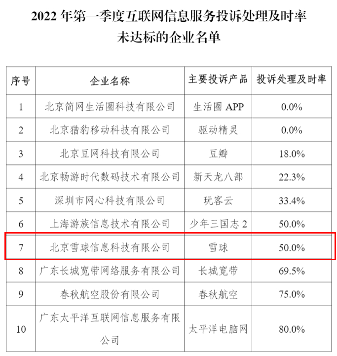 个中,北京雪球新闻科技有限公司登榜2022年第一季度互联网新闻任职投诉经管实时率未达标的企业名单,位居第七位。其苛重投诉产物为雪球,投诉经管实时率为50.0%。