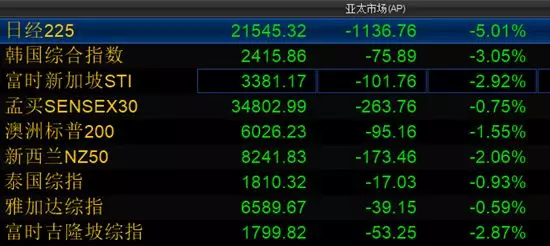 正在美股崩盘拖累下,今日开盘亚太股市就暴跌,日本股市更是触发熔断。日股日经225指数开盘跌1.8%至22,267点,东京证交所MOTHERS指数期货触发熔断机造。