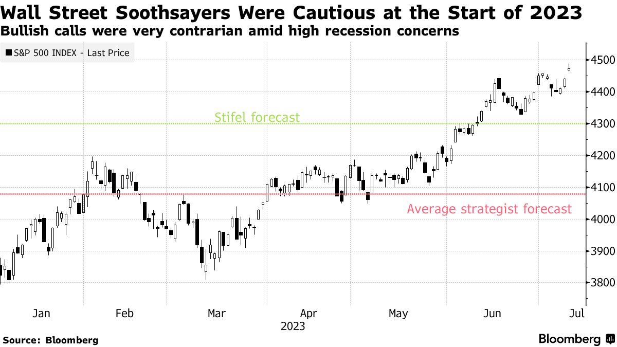 班尼斯特正在本年年头曾精准预测到上半年美股反弹趋向,他正在一月份估计,通胀大幅降温的预期以及美联储暂停加息将驱动美股正在上半年完毕反弹,估计标普500指数将反弹至4300点左近;但他当时估计本年下半年美股或许回吐一片面乃至全盘涨幅。