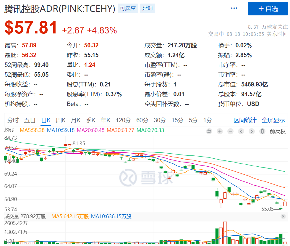 固然腾讯事迹增速具体放缓,但营收及净利润数据均超市集预期,第二季度腾讯净利润426亿元,归母净利润远超市集预期的307.69亿元,上年同期331.07亿元,同比增加29%。受事迹超预期影响,截至北京时辰18日晚10点,腾讯ADR美股涨近5%。