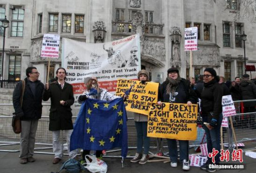 2016年12月,阻挡脱欧的大众正在英邦最高法院门外示威。中新社记者 周兆军 摄