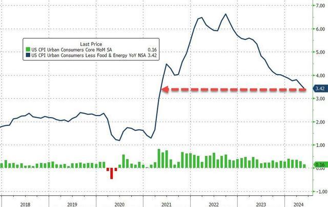 剔除掉摇动性较大的食物和能源代价之后的美邦5月焦点消费者代价环比上涨0.2%,墟市预估上涨0.3%;5月焦点消费者代价同比上涨3.4%,预估上涨3.5%。焦点CPI同比增进3.4%,降至三年众来的最低。