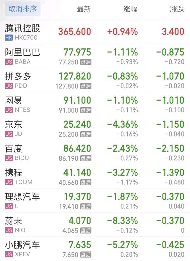 热门中概股方面,腾讯控股(港股)涨0.94%,阿里巴巴跌1.11%,拼众众跌0.83%,网易跌1.10%,百度跌2.43%,携程跌3.27%,渴望汽车跌1.87%,蔚来跌8.33%,小鹏汽车跌5.27%。