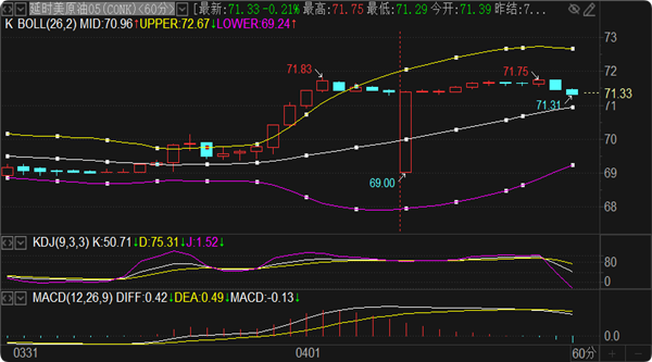原油及时行情阐发:周一美盘原油价值冲破上月高点70.5之后向上拉升,凌晨高点触及71.8一线,阶段行筑底一经告终,三周之前众次提示的65.2波段看涨基础创办,现正在看来同样能以65.2动作本年的低点防守看涨周旋。既然原油价值站稳70合口上方,操作思绪就以70.5-70区域防守看众,更下方支持参考日线场所即可。阻力方面介意2小时上轨72.4和1小时上轨72.6造成的压力畛域,向上看日线一线。全部来看原油价值走势渐渐筑底,连接4周K线低点抬高,季度周期布林带中轨从74.5上移到75.7一线,操作上刘铭诚发起回撤做众为主,高位做空为辅。