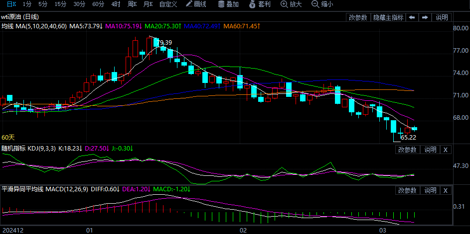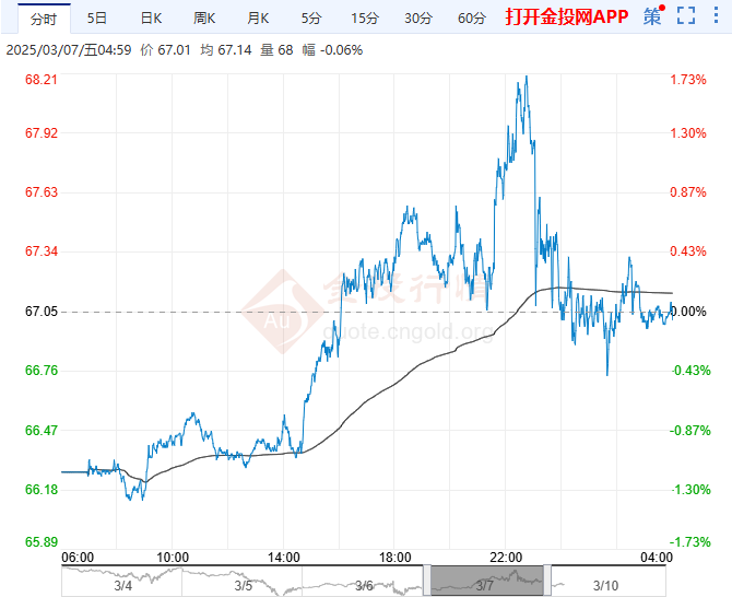 礼拜三(3月5日)亚盘时段,美原油价钱目前交投于67.8美元/桶邻近。OPEC+按部署将正在4月份增产,激发了商场对环球原油供应过剩的顾忌,加上美邦经济行动疲软和闭税升级形成的需求紧缩,进一步组成压力,昨日邦际原油价钱大幅下行,盘中一度跌至三个月低点。