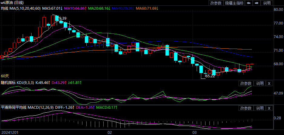 礼拜二(3月18日)亚盘时段,美原油价值目前交投于67.4美元/桶左近。中东地势的不确定性令油市格式再生改变,美元走软海外买家进货石油本钱消浸,从而刺激了需求,昨日邦际原油价值小幅收涨。