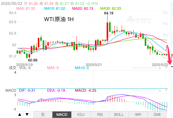 原油短线H)走势冲高回落,油价触及64.20后转入下行节律。均线体例拐头向下发散陈列,短线客观趋向对象向下。早盘油价仍持续立异低,主趋向对象下行。MACD目标下穿零轴,疾慢线与空头动能重叠,预示空头动能出现充沛,估计日内原油仍存不才行空间。