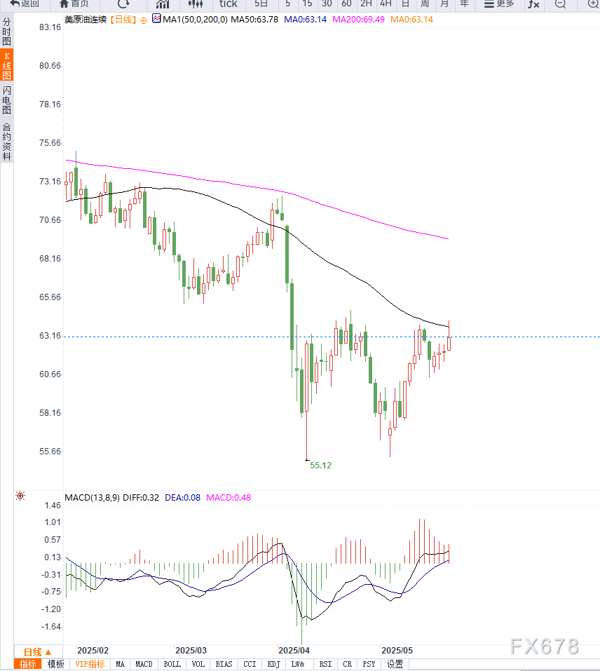 从日线图来看,WTI原油价值已凯旋冲破60日均线,且连收三阳线,显示众头攻克主导。MACD目标造成金叉,动能柱接续扩张,短期内希望挑拨64.80美元高点阻力区域。