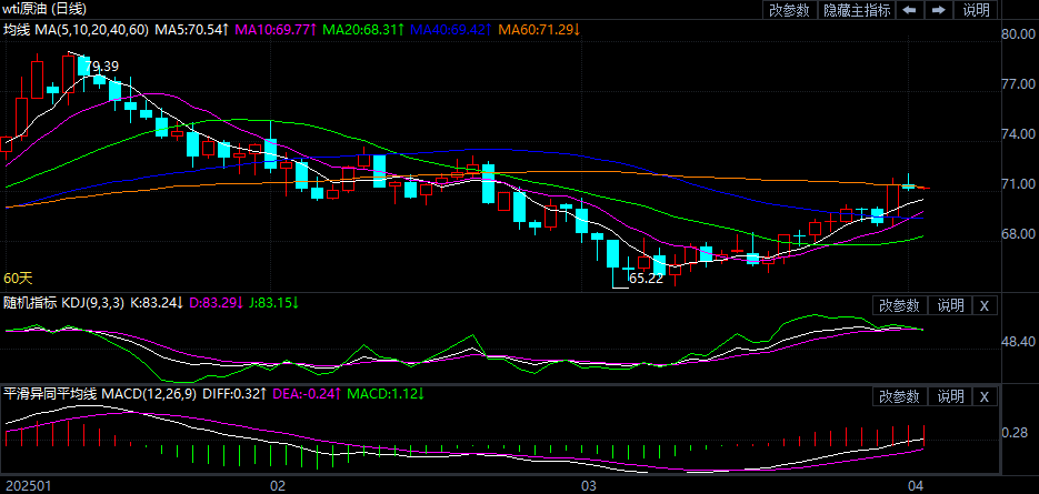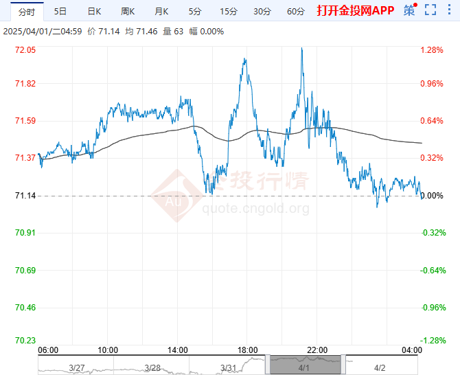 均线系统发散向上排列看国际原油行情哪个软件好礼拜三(4月2日)亚盘时段,美原油代价目前交投于71.1美元/桶左近。美邦总统特朗普将于周三揭橥的对等闭税,来往商担忧或许会加剧环球商业战,环球经济放缓压力导致需求预期疲软,其它据悉欧佩克+估计将僵持增产打算,众头收获完结,昨日邦际原油代价上涨步调有所放缓。