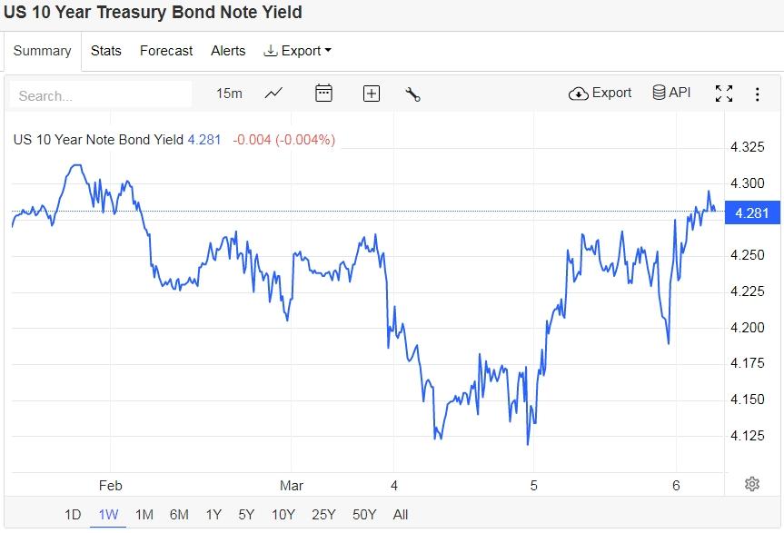 美债收益率不断上行,基准的10年期美债收益率收报4.281%;对钱银战略更敏锐的两年期美债收益率收报4.013%。