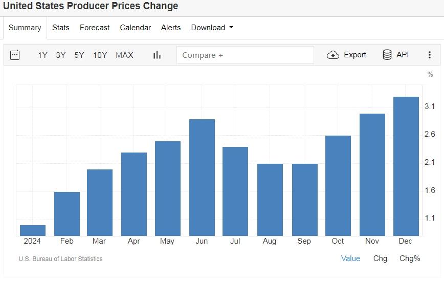 美邦12月PPI不测降温,环比伸长0.2%,经济学家预期增速持平11月的0.4%。12月PPI与重心PPI分裂同比伸长3.3%和3.5%,均为2023年2月从此最高增速,且均高于11月的各自增速,但都低于经济学家预期增速。