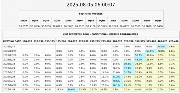 美联储9月降息概率蓦地飙升,这和上周五揭晓的美邦7月就业通知合座失望有很大相闭。2025年8月1日,美邦劳工统计局告示2025年7月的非农就业数据:2025年7月美邦新增非农就业7.3万人,预期加众10.4万人,前值下修至1.4万人;季调赋闲率为4.2%,预期4.2%,前值4.1%。长江证券指出,往前看,就业商场的走软给了美联储充实的降息原由,加之近期美邦生意讲和进度加快,闭税不确定性降温,通胀前景趋于豁后,若通胀未产生超预期上行,9月降息将是也许率事务。而高盛近期也体现,咱们估计美联储将从9月份最先连气儿三次降息25个基点;借使下一份通知中赋闲率进一步上升,则可以降息50个基点。
