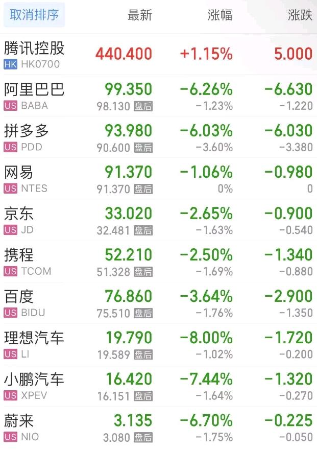 热门中概股方面,腾讯控股(港股)涨1.15%,阿里巴巴跌6.26%,拼众众跌6.03%,网易跌1.06%,携程跌2.50%,百度跌3.64%,理念汽车跌8.00%,小鹏汽车跌7.44%,蔚来跌6.70%。