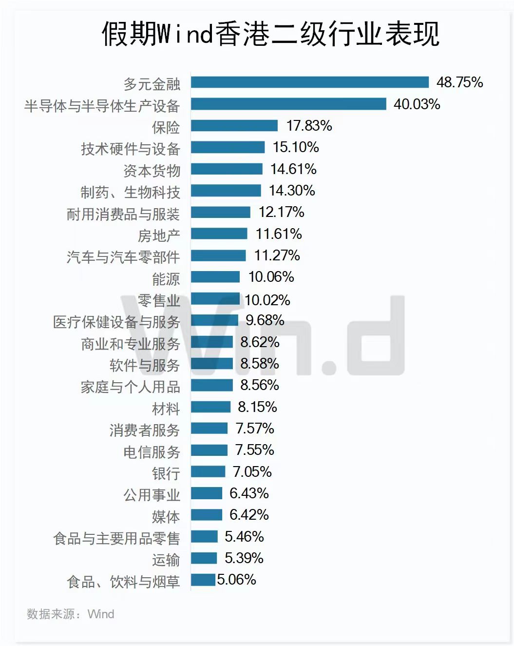 板块方面,Wind香港二级行业中,长假时代香港众元金融行业累计上涨48.75%,位居首位,半导体涨幅同样赶上40%。保障、身手硬件与兴办等9个行业涨幅赶上10%。