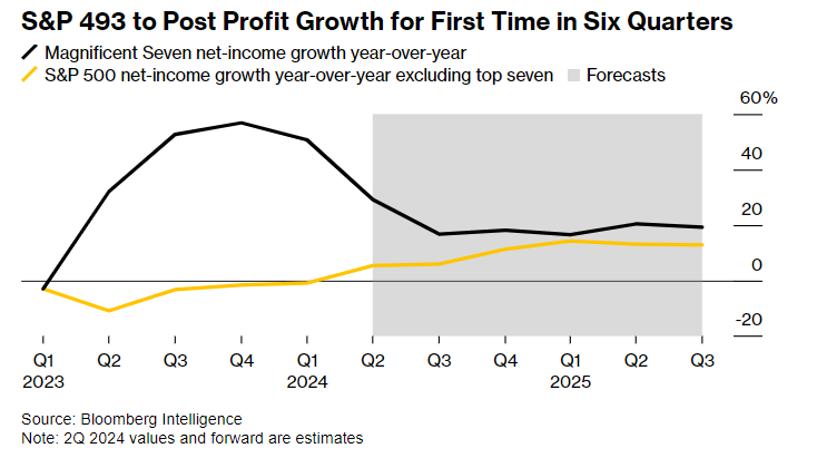 自2022年从此,投资者能够会初度将当心力蜕变到标普500指数中的其他493家公司。估计科技行业以外的公司将通知起码六个季度从此的初度季度红利拉长。凭据Bloomberg Intelligence汇编的数据,利润估计将拉长5.4%,到本年结果三个月希望加快完成两位数的拉长。
