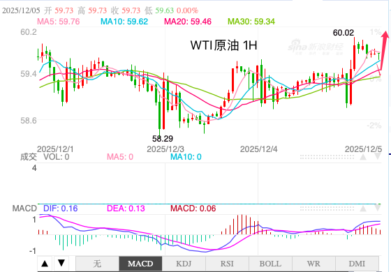 原油短线H)走势区间下沿获撑持向上,仍连结正在区间内。早盘油价正在60合口回落,均线编制发散向上,但短线客观趋向偏向属于区间内上行趋向。动能方面由胶着转为上涨占上风。估计日内原油走势希望冲破区间向上,空间有限。