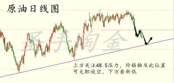 原油昨日阅历欧佩克放出音问耽误减产和叙,不过市集目前还是仍旧可疑的立场,油价冲高之后再度回落,近期原油会处于底部的动摇拾掇,眷注区间47-50的冲破环境,今日凌晨API数据再次大幅度增进,原油落井下石,晚间EIA再次利空,油价再次下行,最低跌至47.01;近期原油上涨还是阻力重重,短线动摇调解,核心眷注下方47.0一线维持破位环境,一朝破位下方空间将掀开,目前的大局来看透位几率很大,因此晚间提议以做空为主。
