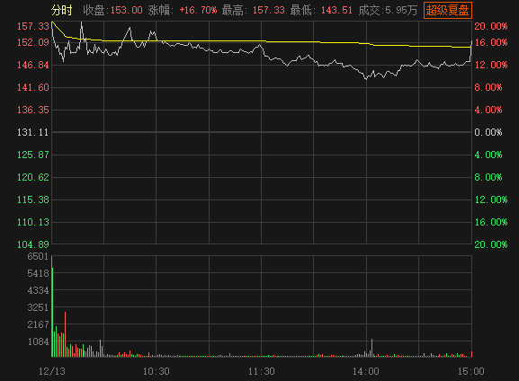 12月13日,百利天恒以涨停价开盘不久,涌出的巨额卖盘使得其股价下跌。随后,股价几次欲挫折涨停,均无功而返,全天以16.7%涨幅收盘。
