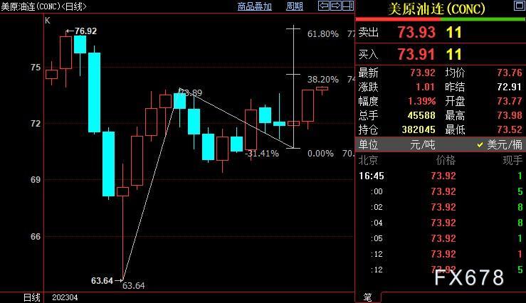 日线图上看,NYMEX原油不妨自70.67美元开启上行iii浪走势,上方阻力看向38.2%方向位74.59美元。iii浪是自63.64美元开启的上行(i)浪的子浪。