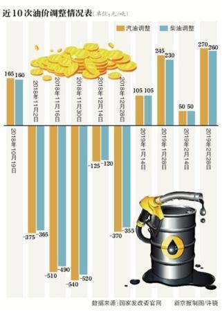 2019年第四轮制品油调价窗口再次开启。据发改委官网发布的讯息,自2019年2月28日24时起,邦内汽油、柴油价值(规范品,下同)分歧上调270元/吨、260元/吨,创本年来最大上涨幅度。全体来看,本次油价上调折合每升89号汽油涨价0.20元、92号汽油涨价0.21元、95号汽油涨价0.22元,0号柴油则涨价0.22元。至此,本年从此我邦制品油价值曾经暴露出强劲的“四连涨”趋向。
