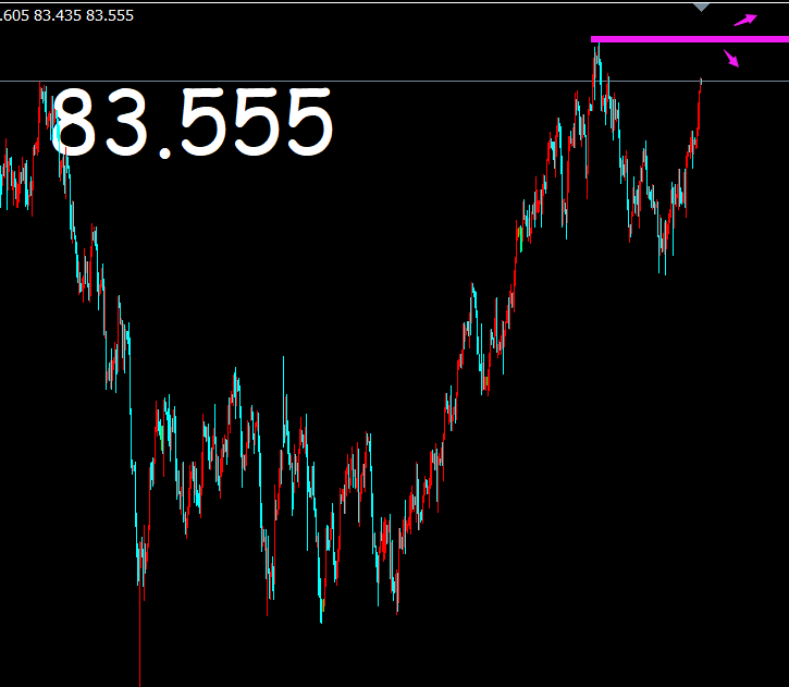 原油周四一直波动上行,当天最低81.4,最高来到83.6,日线,从日线看上方又有上涨上涨的空间,上方眷注85一线,四小时线,波动上行,小时线,日内操作思绪以回调众为主