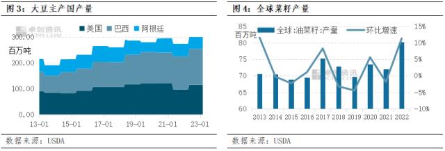 中永恒来看,除了宏观压制用意已经存正在,油脂供需格式也将必定本轮行情仅仅是触“底”反弹。从大豆和油菜籽的产量数据来看,均存正在较为显着的丰产预期。据美邦农业部数据显示,美邦、巴西和阿根廷2022/2023年度大豆的产量区分为114.75、139.50和46.2百万吨,个中美邦、巴西较昨年同期区分填充18.08、11百万吨,阿根廷则因气象干旱,大豆产量较昨年同期删除2.60百万吨。同时环球油菜籽产量也将抵达80.23百万吨,环比增进近11.28%。固然需求端同样有所填充,但需求增量远不足提供增量,大豆和油菜籽代价中永恒重心仍存下移底子,豆油和菜籽油代价或也顺势有所回落。