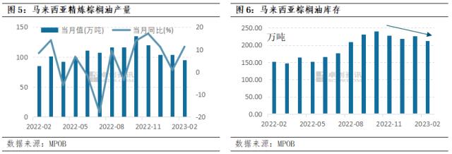 棕榈油的景况相对付豆油和菜籽油得阐扬要强少许,受马来西亚3月份暴雨的影响,棕榈油产量有所降落,据南部半岛棕榈油压榨商协会(SPPOMA)数据显示,2023年3月1-25日马来西亚棕榈油单产删除22.61%,出油率删除0.06%,产量删除22.92%,且2月份库存降落显着,供应收紧对代价撑持用意较强,供需格式较岁首存正在显着的改观。将来受制于豆油和菜籽油代价回落的影响,代价难有较大的涨幅,而原油代价高位或将托底棕榈油代价,是以棕榈油全部或以震动为主。
