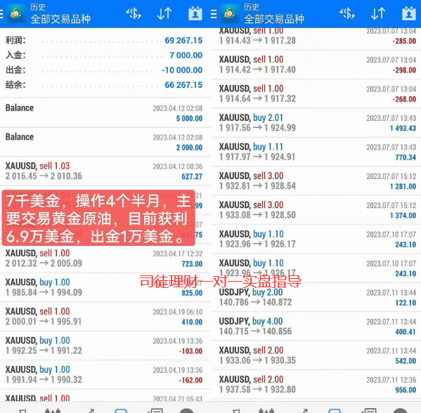 托管账户4月入金7千美金目截止目前出金1W美金 账户目前赚钱6.9W美金