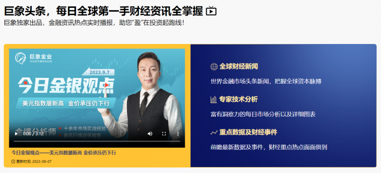 巨象官网“往还主见”版块推出《巨象头条》栏目及及时剖判师政策,个中巨象头条逐日更新环球财经音信及剖判师金缠的日里手情解析视频,批注明显,有助于黄金投资者举办政策判别,采纳适宜的现货黄金投资往还政策。
