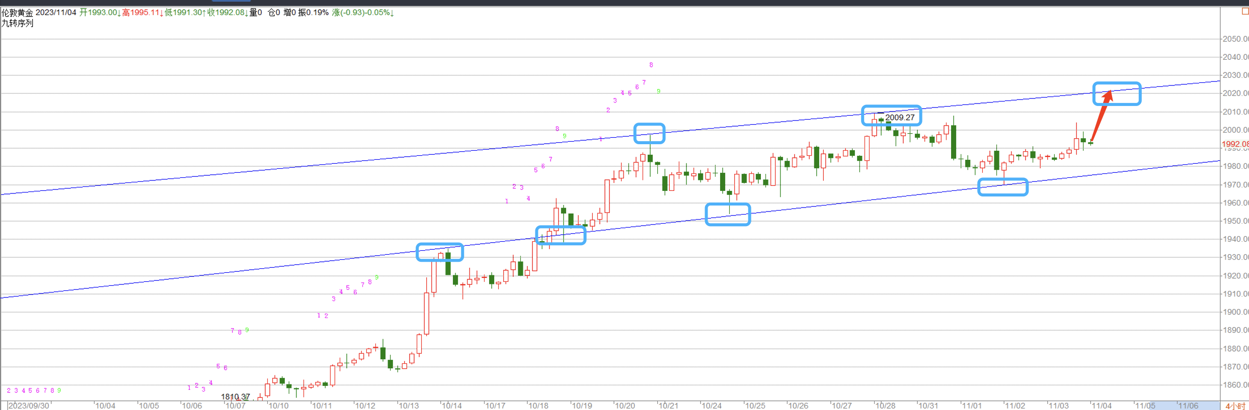 数据发布后,现货黄金短线美元大闭,随后并未显现大幅颠簸,支持正在1980-2000整理。