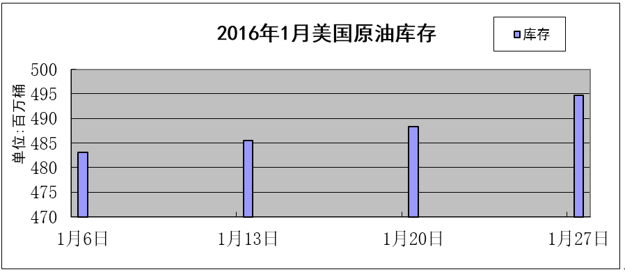 第三,美邦原油库存走高也给原油反弹之道带来阻力。美邦能源材料协会(EIA)颁布的数据显示,1月份美邦原油库存接连增进,截至1月27日确当周,美邦原油库存增进646.6万桶达4.9476亿桶(睹下图),同时汽油库存和馏分油库存增进也逾越预期。