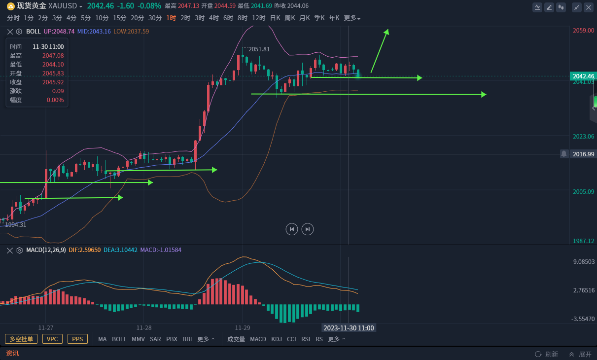 昨日日线高位十字星调度,前面大阳上升,十字星调度,今日还需连接看众,凌晨冲高,早盘回落调度,今日连接看众就不行等候太大幅度的回撤,凌晨和早间回踩的低点2042左近直接去众。分水岭昨日低点2036,昨日一经涌现调度低点,就不行再次去破低,不然深度回撤。汗青高点近正在咫尺,个别以为或者率会破新高洗盘,回踩便是众的机遇,没有破新高测试发生商场众头心绪之前短促规避空单,破高便是中空机遇,由于价值偏离均线较远,日线和周线背离信号特地显明。