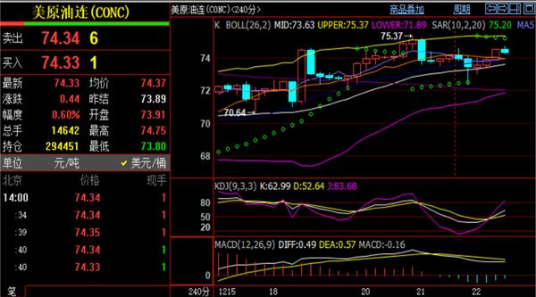 原油 走势日线均线和昨日低点重合支撑位在72.4一线原油技能面领会:本周原油价钱向上发力,众次摸索75-76阻力压造节点,但原油价钱周四的回撤力度亲近本周涨幅的三分之二,低点给到72.4一线,尾盘油价配合美元指数的暴跌初步反弹,及时现报价74.4一线。日内阻力方面体贴小时上轨74.9处所,小时线.5处所,更上方阻力正在76.8和77.5酿成的压造阻力节点。