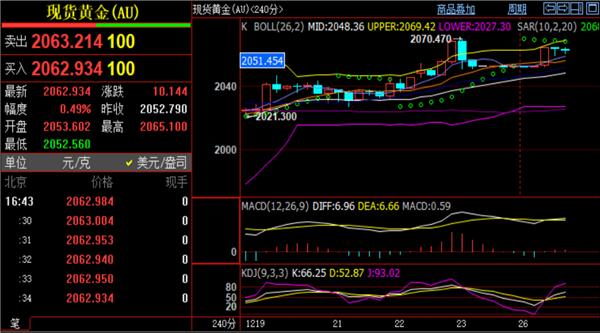 黄金及时行情判辨:周二早盘,黄金代价高开急涨,及时现报价2063一线小时盘面中SAR停损转向目标延迟点压造位也处于2068相近,日线相近,这会是第二个压力点,更上方阻力参考斐波那契扩展东西2092压造点。支柱方面钟情早盘低点2053支柱点,日线地位,更下方防守位参考小时线均线一线均线地位酿成支柱。