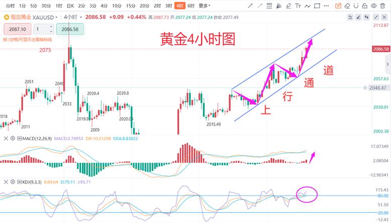 从日线图来看,日K之中的随机目标金叉向上,主众向上。目前没有死叉,不赞成暴跌。状态上,连阳上升,连合目标,照旧是主众控盘。于是,倡议放弃左侧抓顶做空的思道。黄金4小时图中,均线金叉,MASD打出赤色动能柱,KDJ随机目标回踩,钝化向上,依然是主众信号。价位状态上,是一字横盘的状态,主众向上运转为主。顶底转换的维持身分上升到2070上下的身分。短线左近。