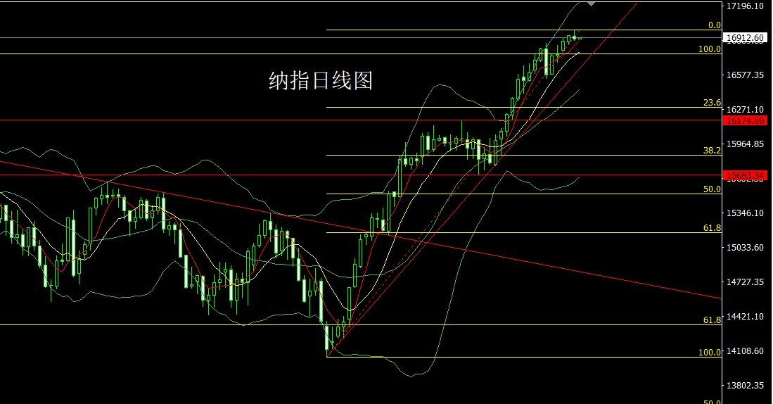 纳指商场昨日开盘正在16923.7的地位后行情先拉升,日线的地位后行情回落,日线的地位后行情整顿,日线的地位后行情以一根上影线较长的倒锤头样式收线,而如许的样式扫尾后,尾盘有必定的调节信号,点位上,今日16940空止损16980,下方倾向看16900,跌破看16850-16800.