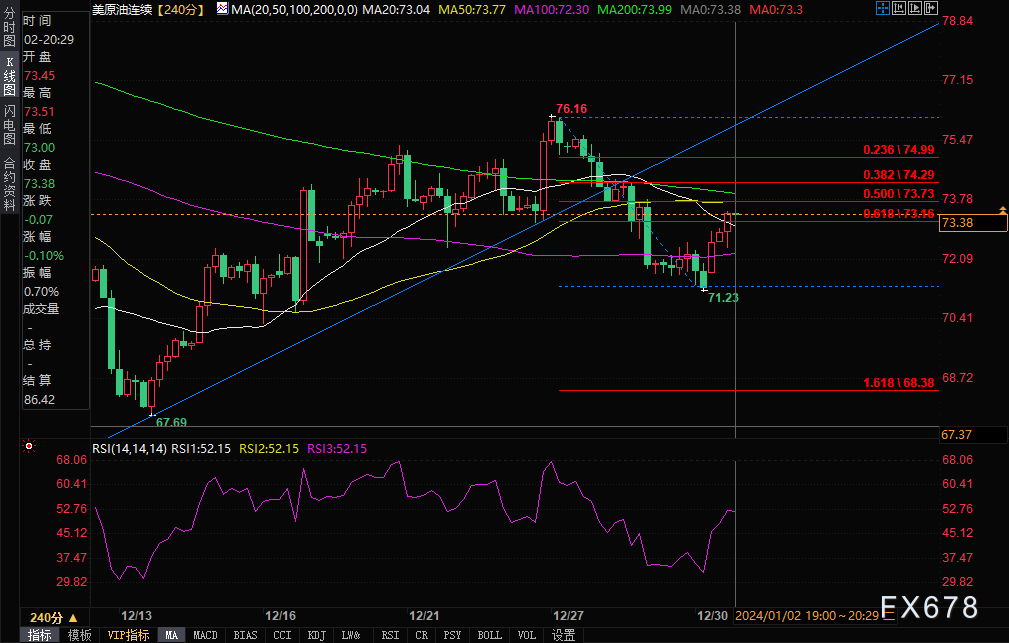 500)this.width=500 align=center hspace=10 vspace=10 rel=nofollow/38.2%斐波那契回撤位亲密每桶73.10美元,50%回撤位是每桶73.71美元。更大的调动能够会到达每桶74.32美元的区域,这是最亲密前趋向线的区域。