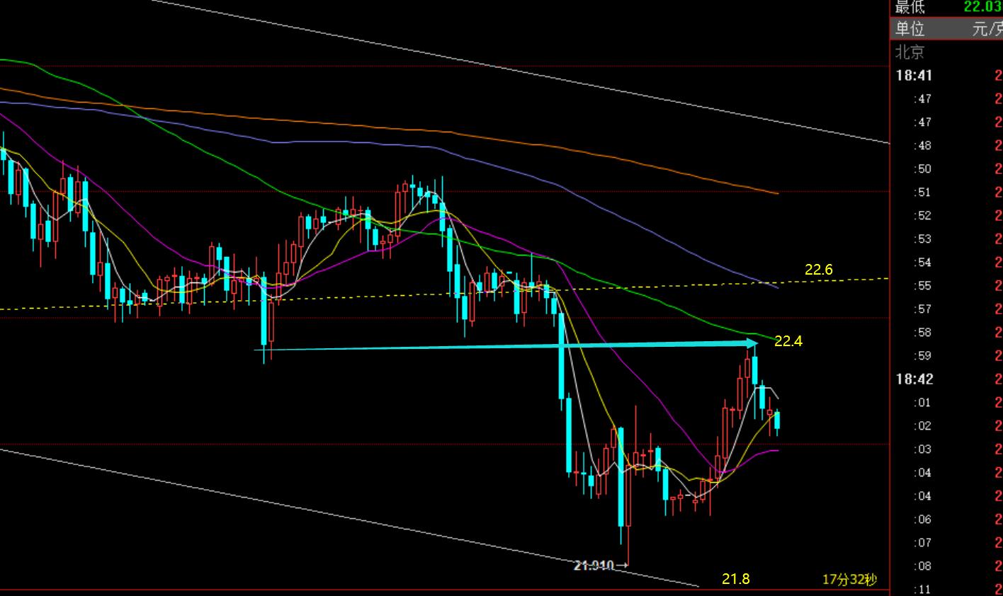 第二,白银方面: 它的走势比黄金弱,且索性些,弱势打压至21.9,差一点抵达21.8维持;
